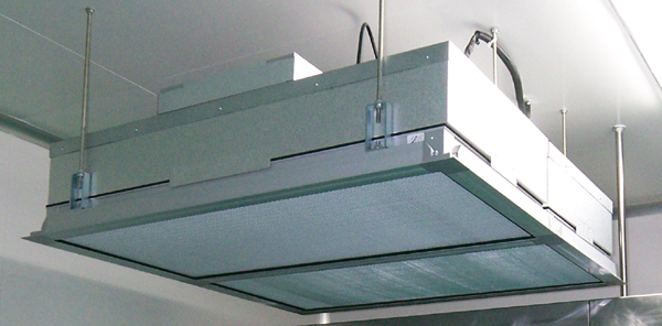 FFU層流送風單元模塊可連接使用.使得FFU廣泛應用潔凈室、潔凈工作臺、潔凈生產線、組裝式潔凈室和層流罩等應用場合。FFU設有初、高效兩極過濾網。風機從FFU頂部將空氣吸入并經初、FFU高效過濾器.過濾后的潔凈空氣在整個出風面0.45m/s±20%的風速勻速送出。