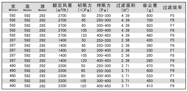 用戶選購(gòu)指南-箱式中效過濾器技術(shù)參數(shù)